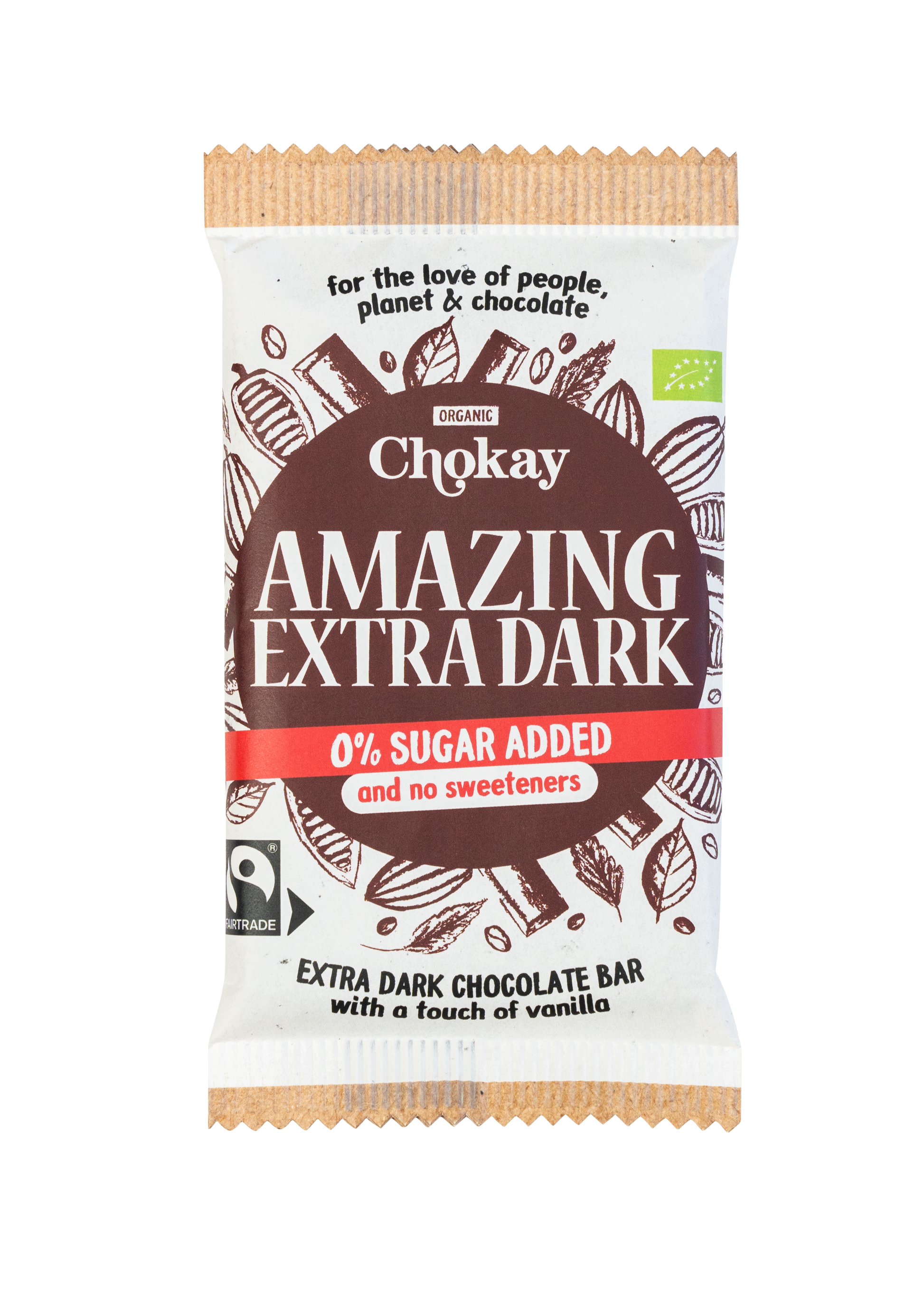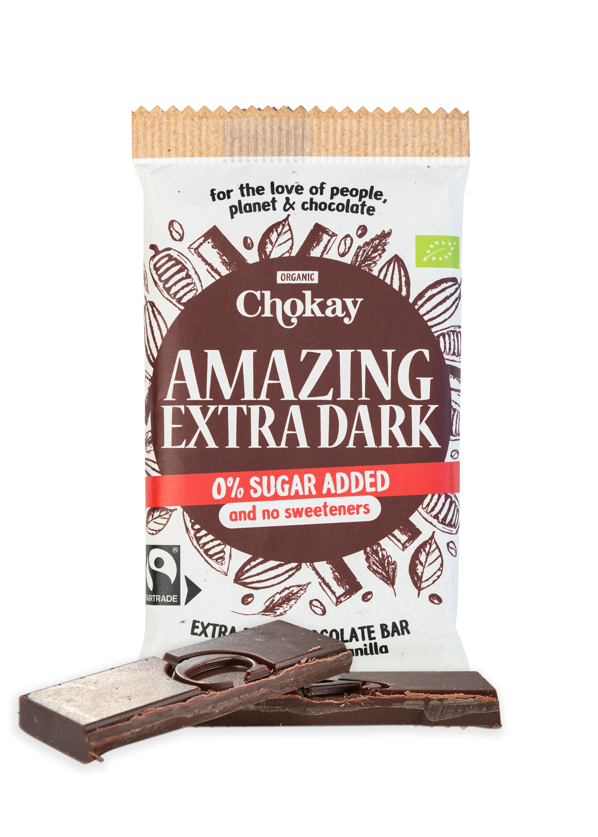 Vår nyeste sjokoladeplate for elskere av EKSTRA mørk sjokolade. 20 % mer kakao enn Amazing Dark-platen, intens med en subtil bitterhet. Fair trade, vegansk og glutenfri. Fantastisk!
