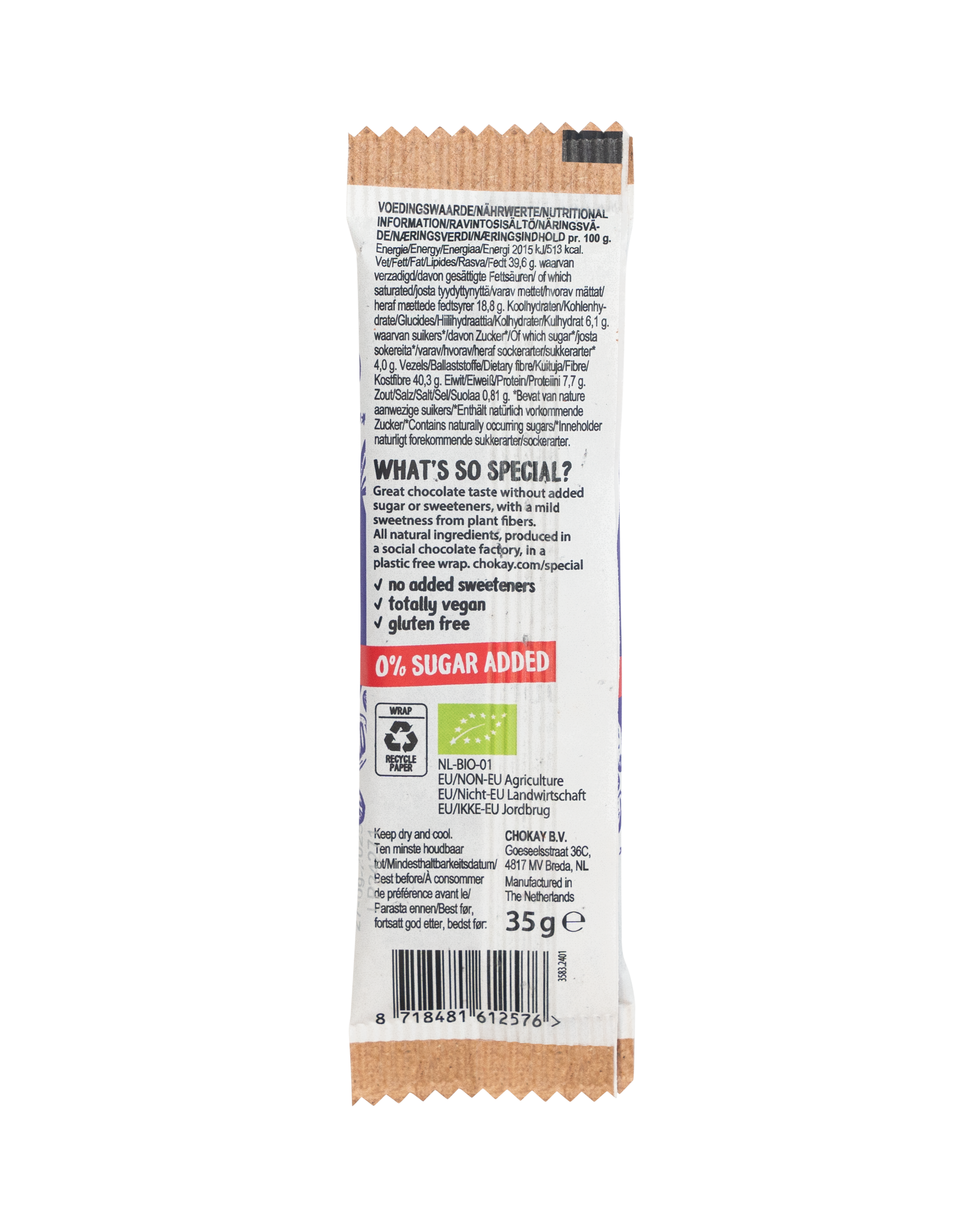 Den deilige kombinasjonen av mørk sjokolade, mandel og havsalt. Og selvfølgelig uten tilsatt sukker og søtningsmidler, fairtrade, vegansk og glutenfri.
